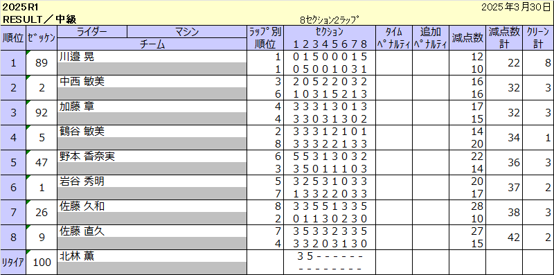 1位は川邉選手。TLM50での参加ですが流石!上手ですね。