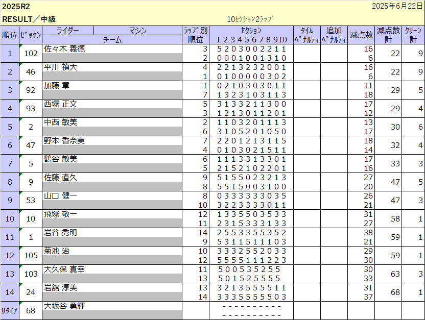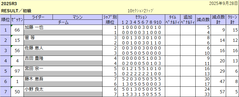 初参加のエンデューロライダー細谷選手が1位でした。兄のようにどっぷりトライアルにはまってくれると良いんですけどね。